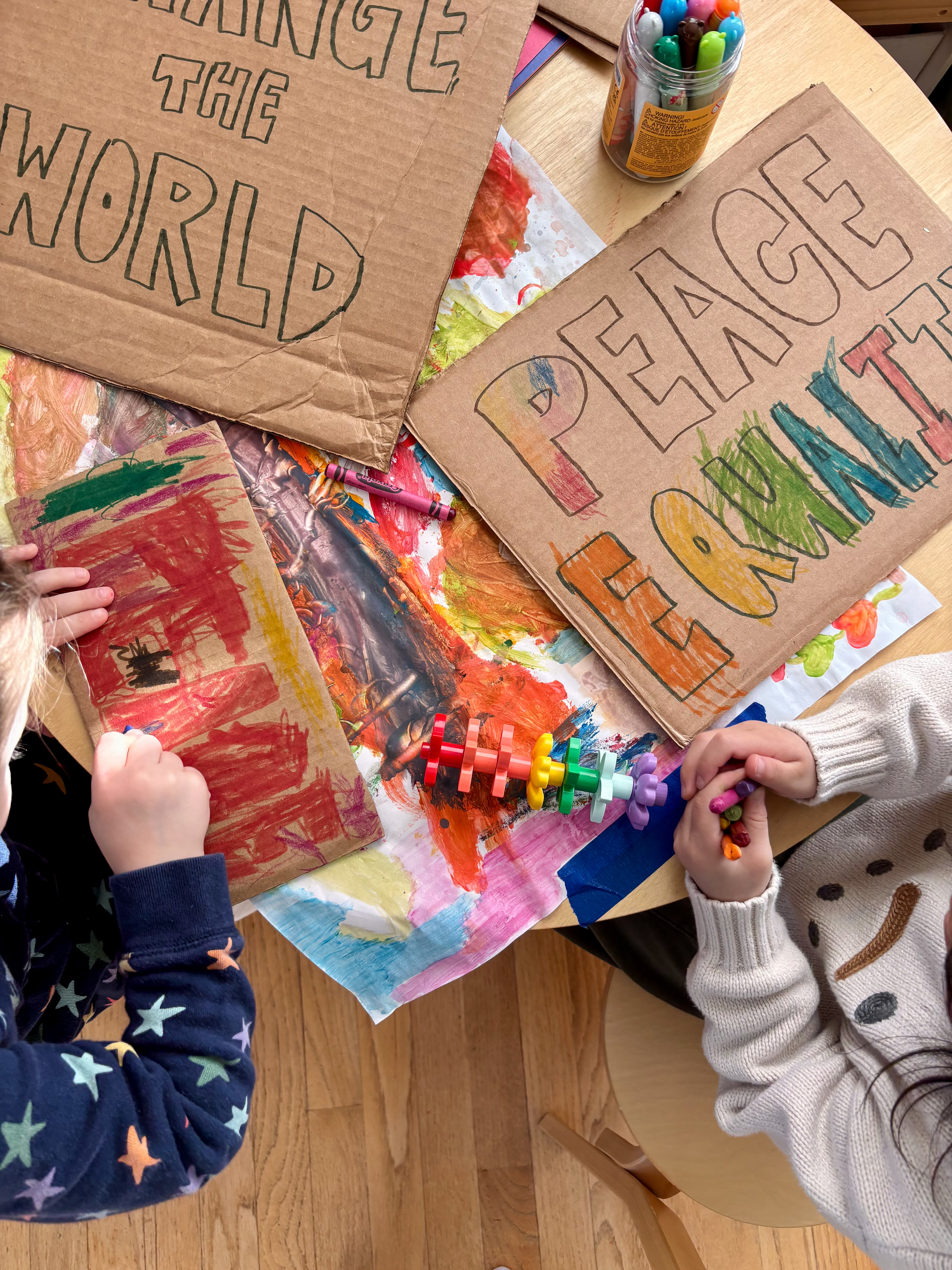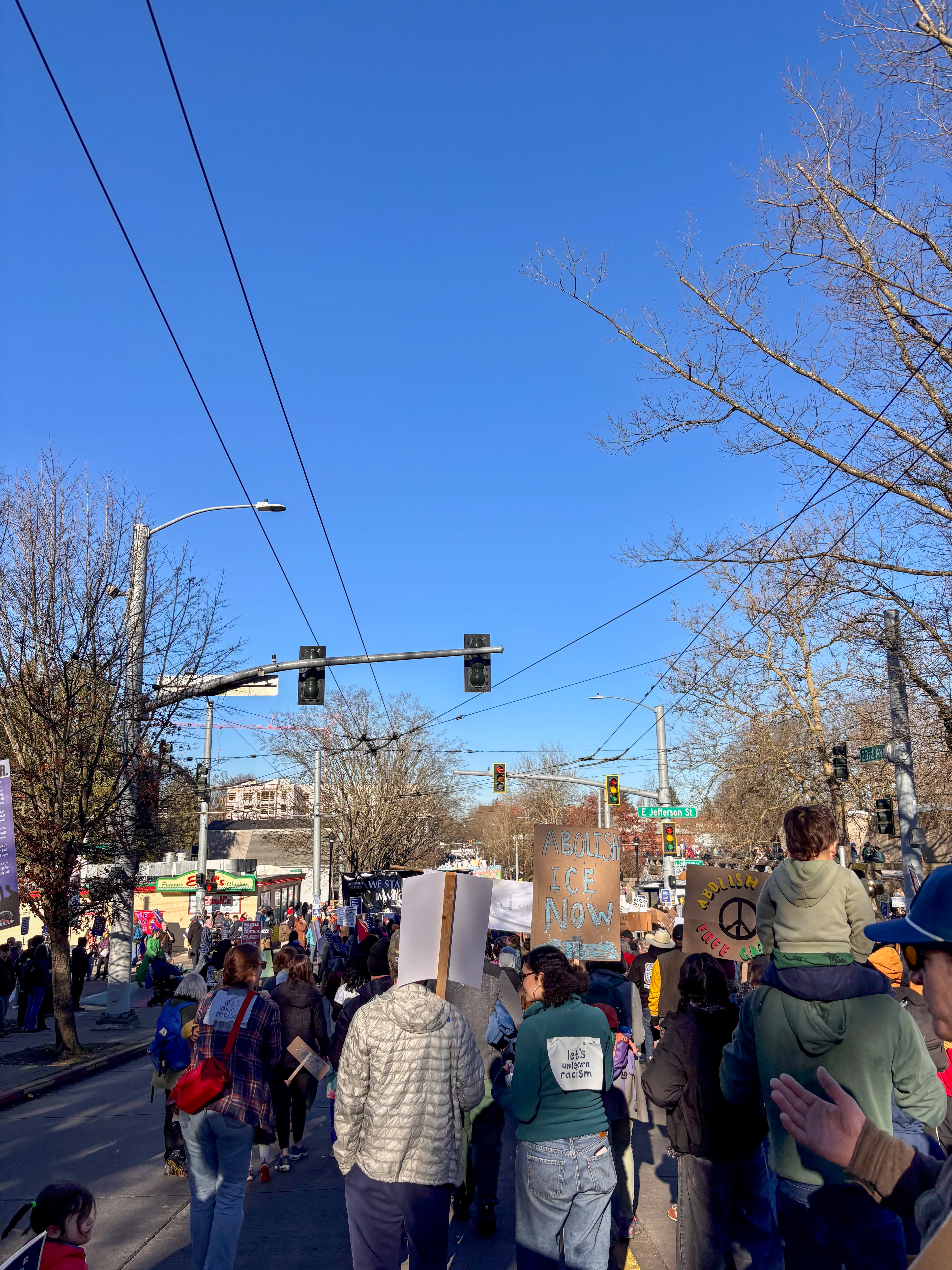 This week started with MLK Jr. Day; a moment of reflection in a time that feels heavier than ever. I took my pair of three-year-olds to a march, which, by the way, is a bold and crazy endeavor for toddlers with no sense of rule-following nor the importance of staying together in a mass of humans thousands strong. We crafted signs beforehand while chatting about peace, equality, love, and change. How does one teach toddlers about the implications of the Civil Rights Movement, much less the contemporary and connected injustices of ICE? I wish I had the answers. What I do have is their innocence-filled signs, a mental image of them gleefully marching while chanting "WE NEED PEACE!" and a reminder that thousands of our neighbors show up.
